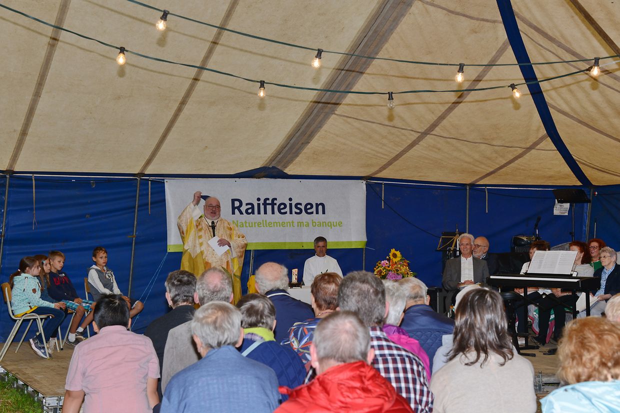 Zum Festauftakt wurde im Zelt eine Messe gelesen, unter der musikalischen Gestaltung der Chorale Ste.Cécile aus Ulflingen.