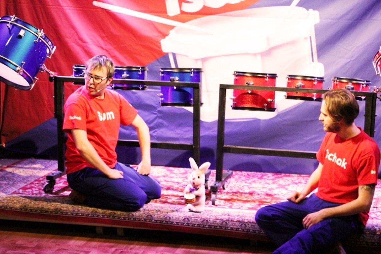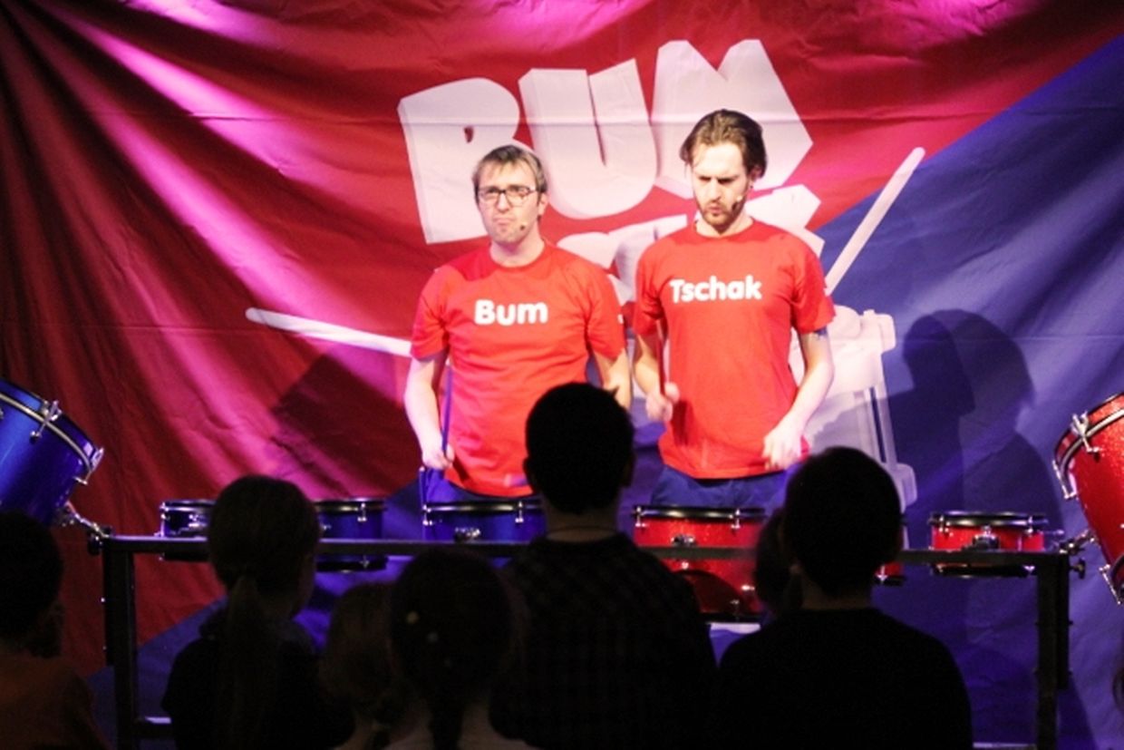 Et gouf getrommelt, gehopst, gesprongen a generell esou richteg schéi vill Kaméidi gemaach - awer, w.e.g., mat Rhythmus. Et war also e vollen Erfolleg! Fir weider flott Manifestatiounen, consultéiert eise Site www.kulturhuef.lu oder fir weider Informatiounen iwwert dësen dynameschen Duo, kuckt w.e.g. op: https://svenkiefer.com/bumtschak-percussion/