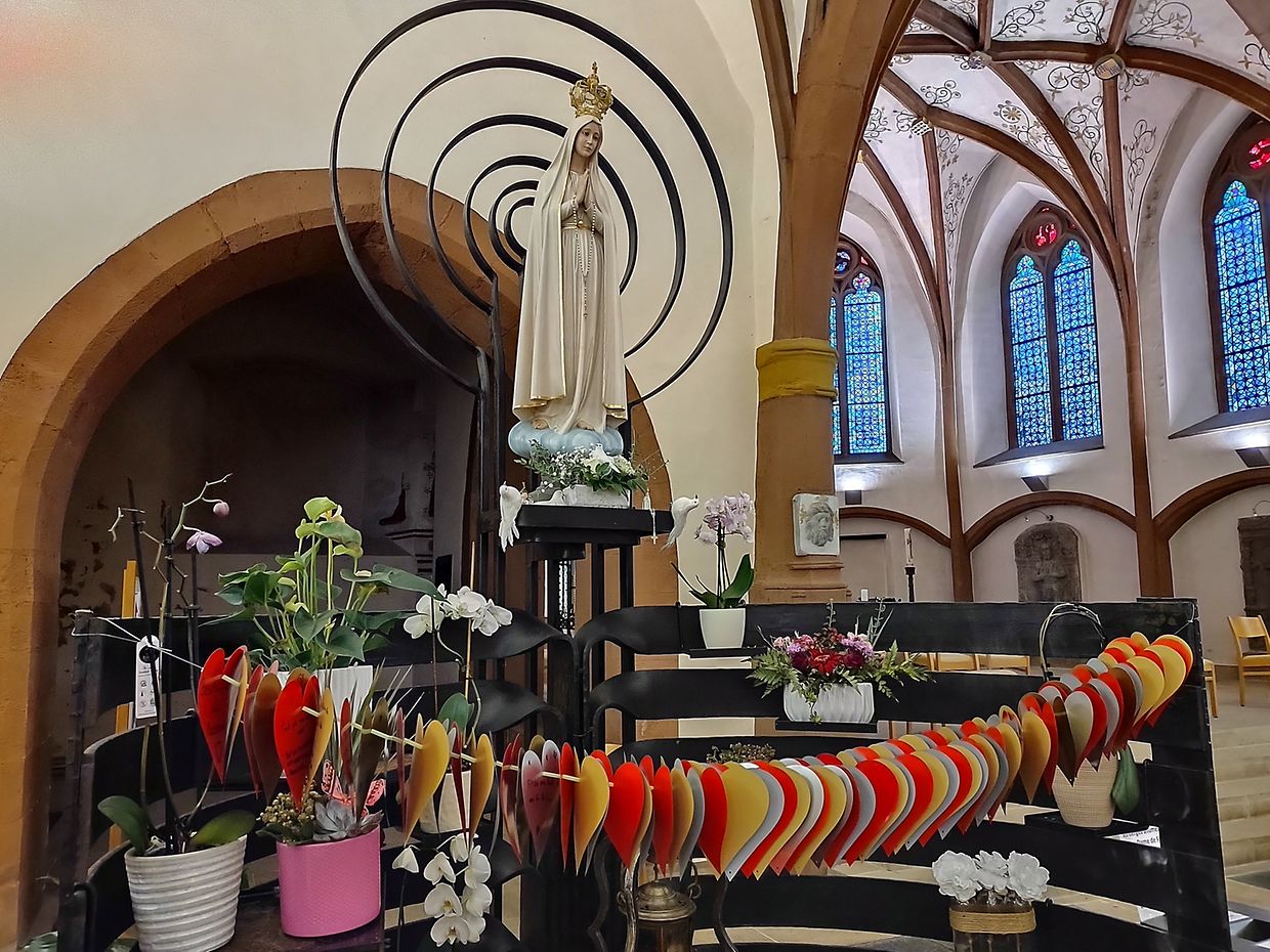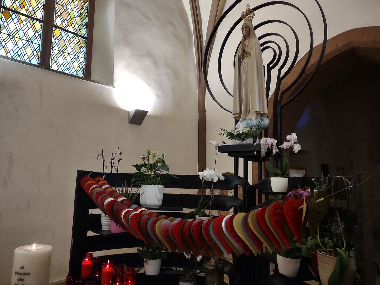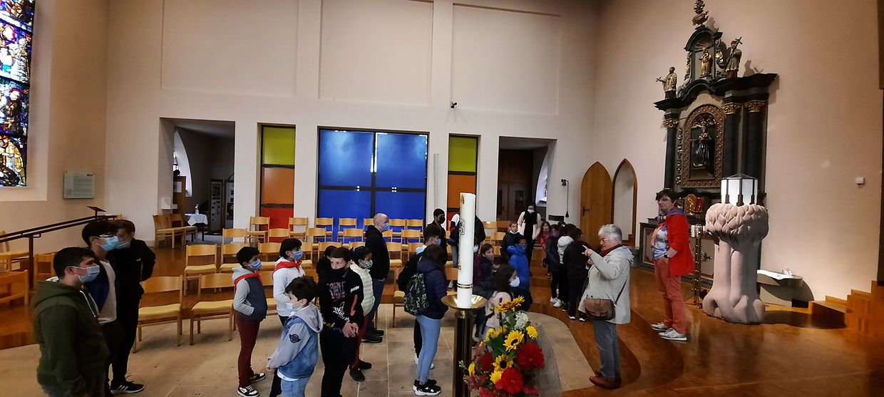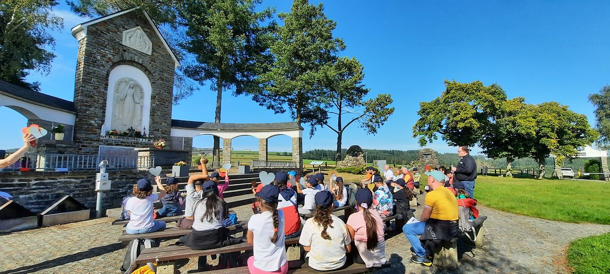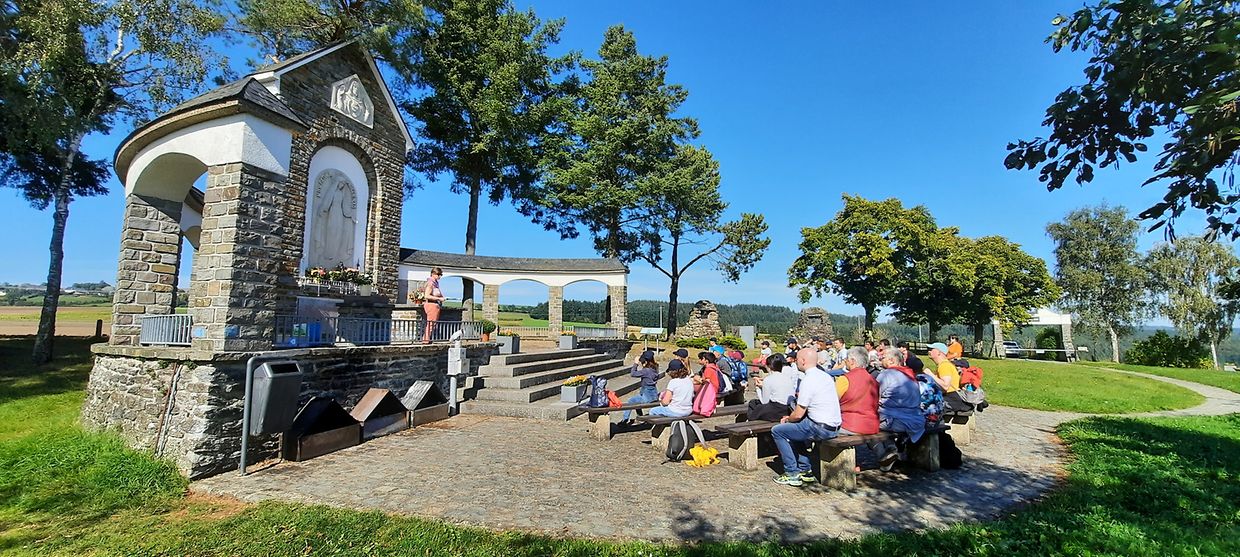 Nodeems mir eis mam Mëttegiessen gestäerkt haten, goung et ze Fouss op de Sanctuaire op Baessent, wou mir ënnerwee dee schéine Kräizwee bewonnere konnten. Op Baessent ukomm, konnten d’Massendénger de Sanctuaire entdecken. No engem Gebietsmoment, wou jiddereen säi Merci an awer och seng Uleies op een Häerz fir d’Muttergottes schreiwe konnt, gounge mir nees ze Fouss bis bei d’Dekanatskierch. D’Häerzer hu mir matgeholl an si hunn elo eng Plaz bei der Statue vun der Muttergottes vu Fatima an der Dekanatskierch zu Nidderwooltz fonnt. Nach eng läscht Stäerkung mat Gedrénks a Kuch an eise flotten Ausfluchsdag goung schonn eriwwer. Rendez-Vous fir den nächsten Ausfluchsdag: 24.09.2022