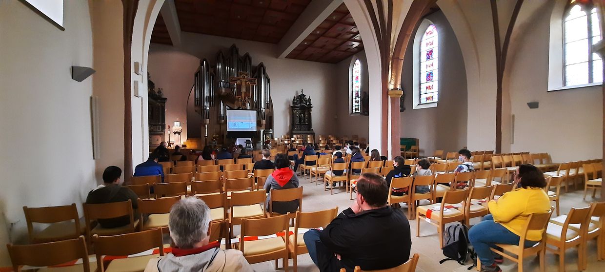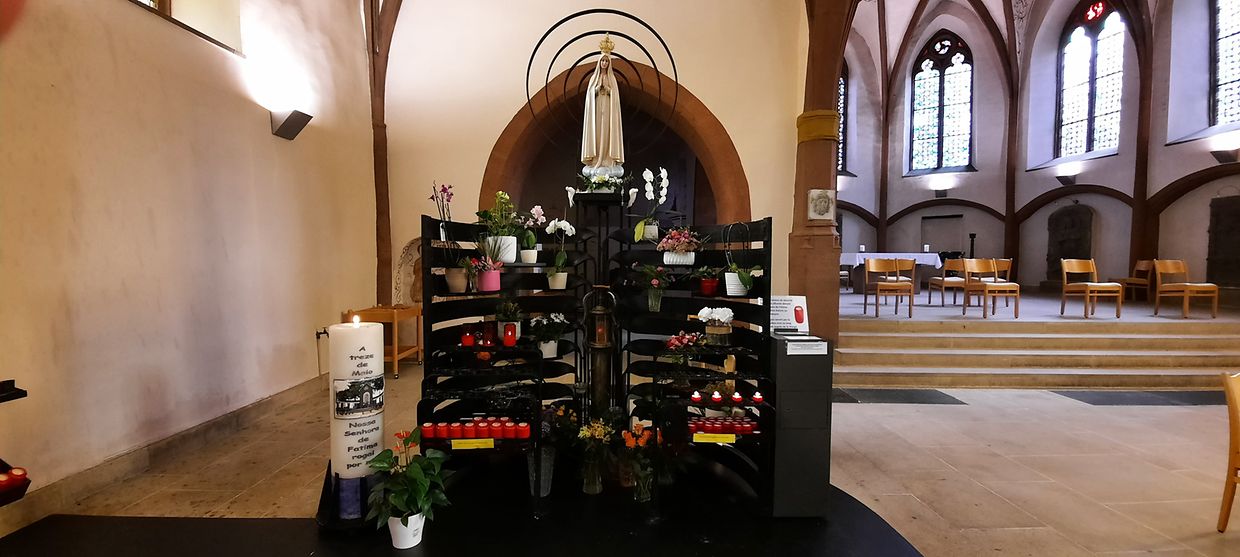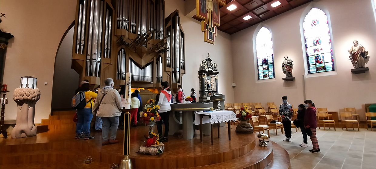 Ugefaangen hu mir eisen Dag an der Dekanatskierch wou mir eis op den Dag mat villen Informatiounen zur Veréierung vun der Muttergottes vu Fatima an zur Geschicht vum Sanctuaire zu Wooltz agestëmmt hunn. Natierlech konnten d’Massendénger d’Dekanatskierch an all Detail bewonneren.